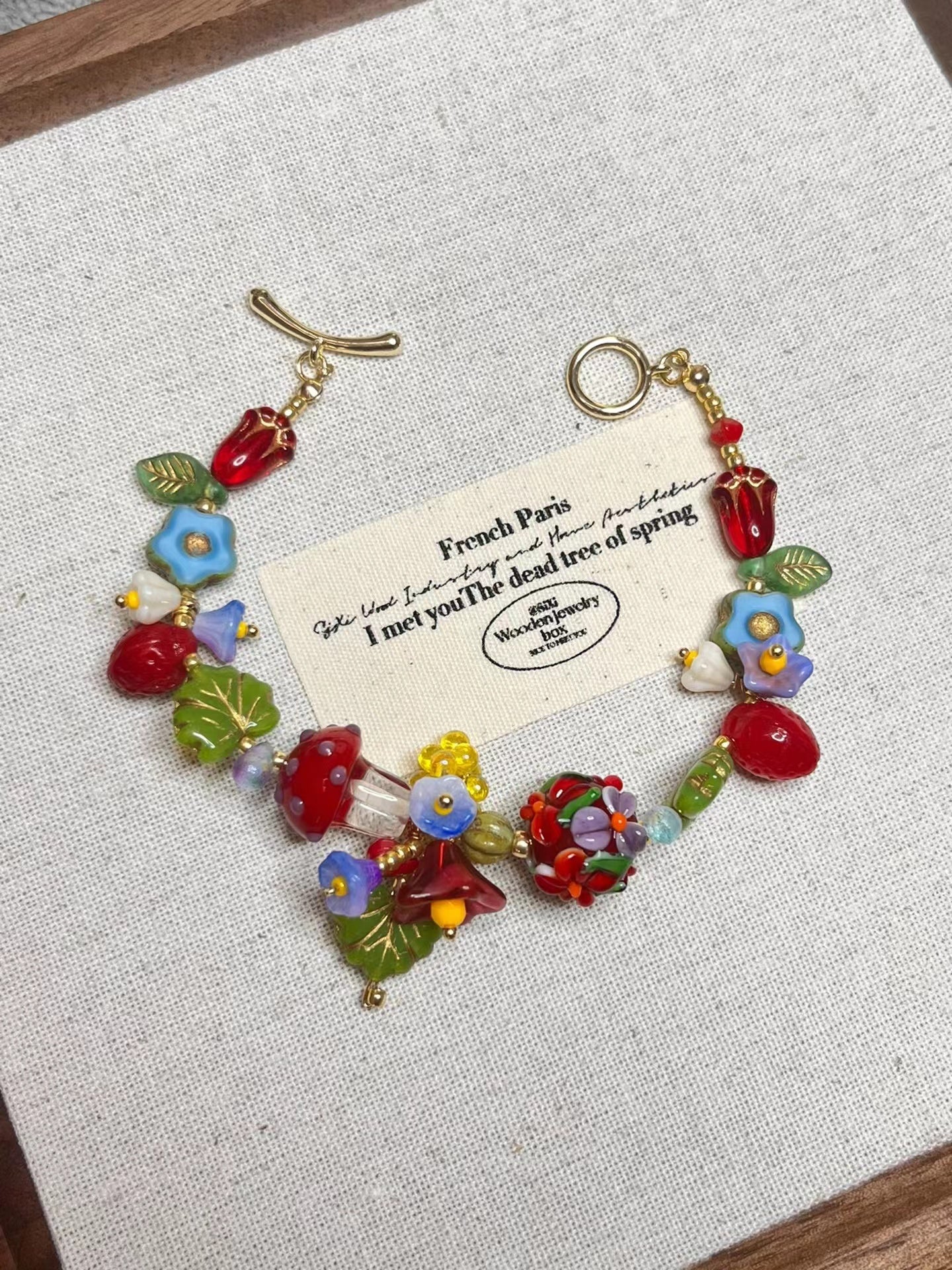 🍄Material: High Quality Czech glass beads(Czech glass strawberries + grapes + lemon + lily of the valley flowers etc.)